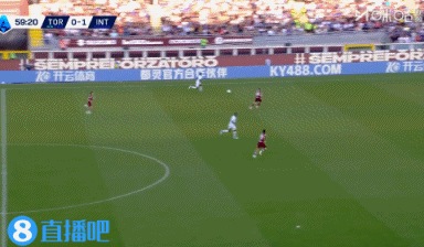 第7分钟,国米左侧角球,战术角球罚到禁区前,斜传后门柱位置,阿坎吉头球攻门,皮球稍稍偏出↓